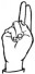 На ћирилици написано ОЛГА ДАБИЋ састоји се из 9 слова [?]. Исписано ћириличном једноручном азбуком за глувонеме: